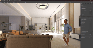 L’AI Image Enhancer (qui fait partie de Chaos Cloud Collaboration) améliore le réalisme, la texture et les détails des éléments secondaires, tels que la végétation, les personnages ou le terrain, sans modifier votre conception de base. Grâce à des commandes avancées, vous pouvez affiner l’apparence des personnages et améliorer la végétation pour plus de précision et de cohérence. Des prises de vue au niveau de la rue aux vues aériennes, il améliore automatiquement les zones à améliorer, sans nécessiter de nouveau rendu. Des prises de vue au niveau de la rue aux vues aériennes, il améliore automatiquement les zones à perfectionner, sans qu’il soit nécessaire de procéder à un nouveau rendu.