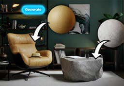 Générateur de matériaux IACréez des matériaux en quelques secondes grâce au nouveau générateur de matériaux IA disponible dans Chaos Cosmos. Grâce à cette nouvelle fonctionnalité puissante, vous pouvez télécharger une photo d’une surface réelle et la transformer en un matériau PBR prêt à être rendu avec toutes les cartes nécessaires en quelques clics seulement. Il est idéal pour les matériaux secondaires qui ne nécessitent pas de direction artistique approfondie, vous permettant de remplir rapidement des environnements et des espaces intérieurs, sans sacrifier la crédibilité et sans avoir besoin d’outils tiers.