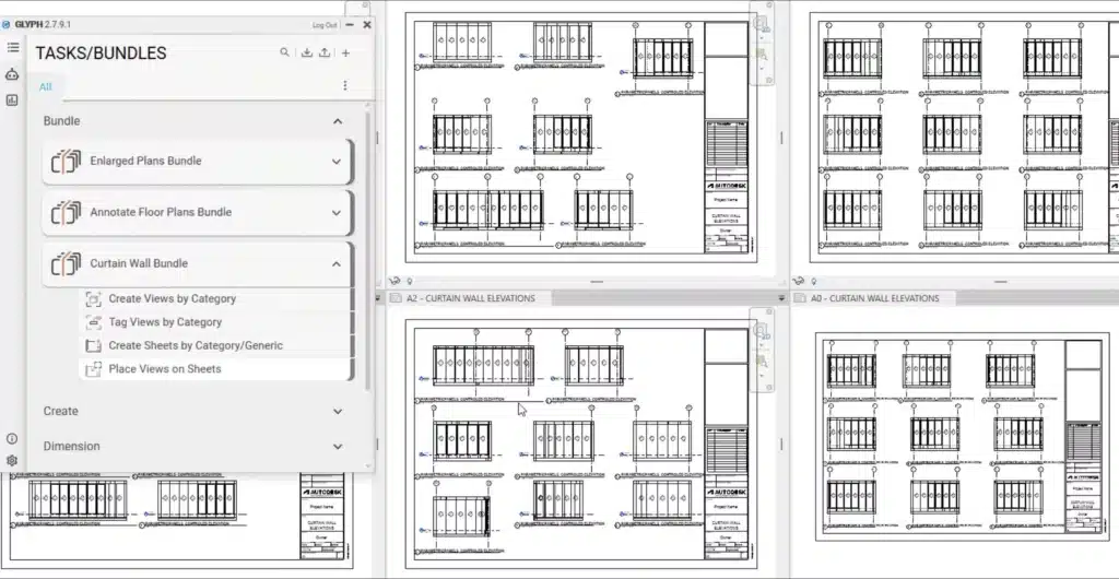 Glyph est un plugin pour Revit qui agit comme un « autopilote » de la documentation. Il permet d’automatiser et standardiser les tâches de création de vues, feuilles, annotations, cotations, placement des vues sur les feuilles, etc.